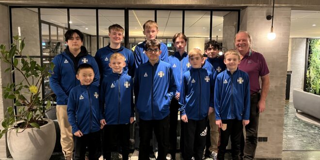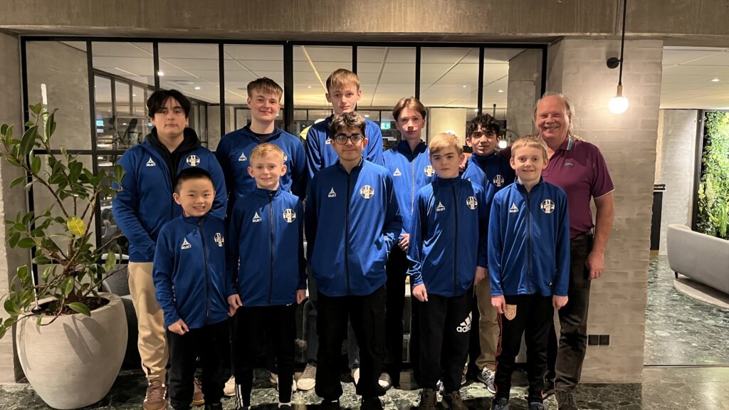 I selve spillesalen var der kun adgang for spillere og officials, men alle partierne kunne ses live på mobilen. Dog med 10 minutters forsinkelse. Så ude i spisesalen havde vi en strikkende gruppe og en skakspillende gruppe med mobilerne fremme. Gæt selv hvem der var hvem….